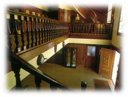 unas magnificas escaleras de maderas nobles, y un sobrio empanelado